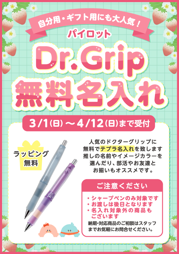 今月は、Dr.Gripの無料名入れ企画を開催♪