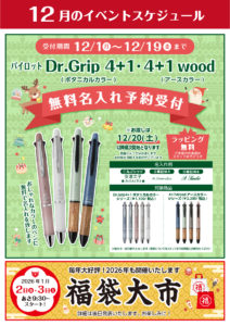 12/1(月)~12/19(金)までの期間限定で、Dr.GRIP4+1・4+1woodの無料名入れを実施♪